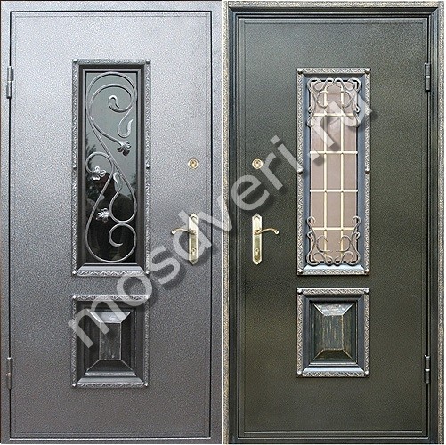 Металлическая входная дверь со стеклом и ковкой и порошковым окрасом с двух сторон — совмещает современный дизайн и высокую надёжность.